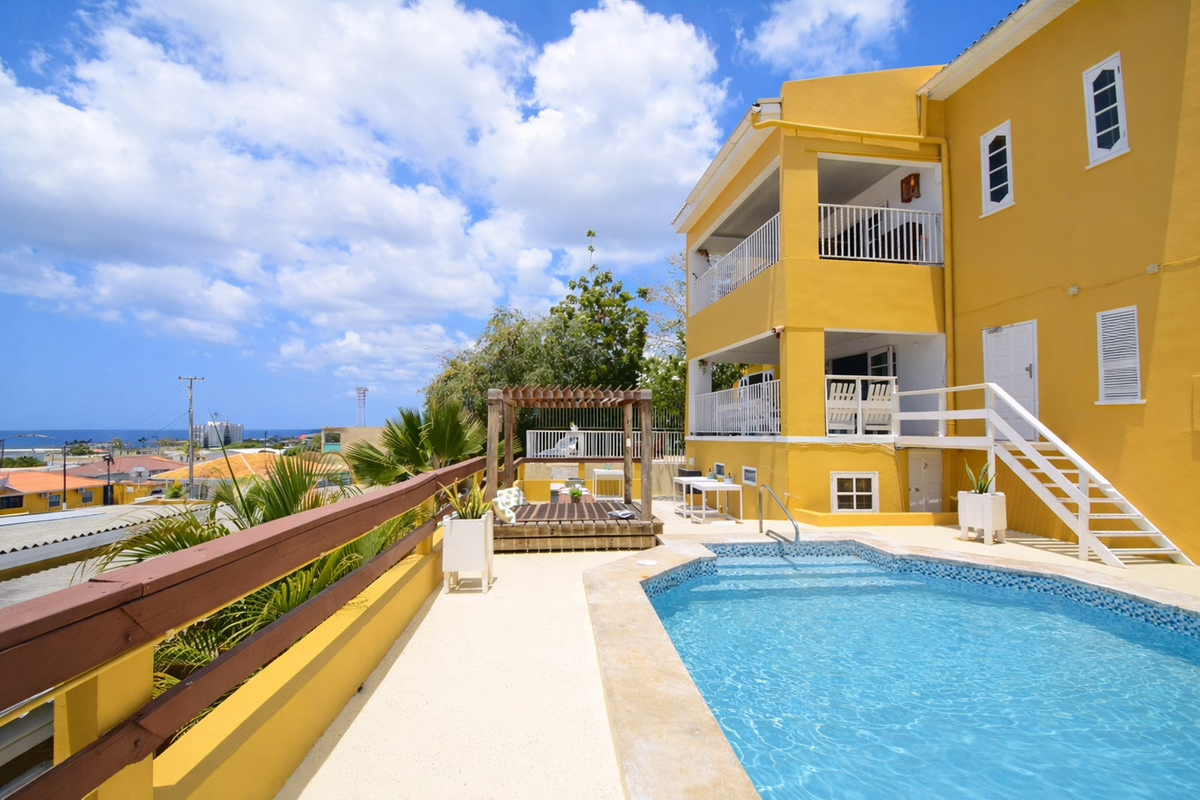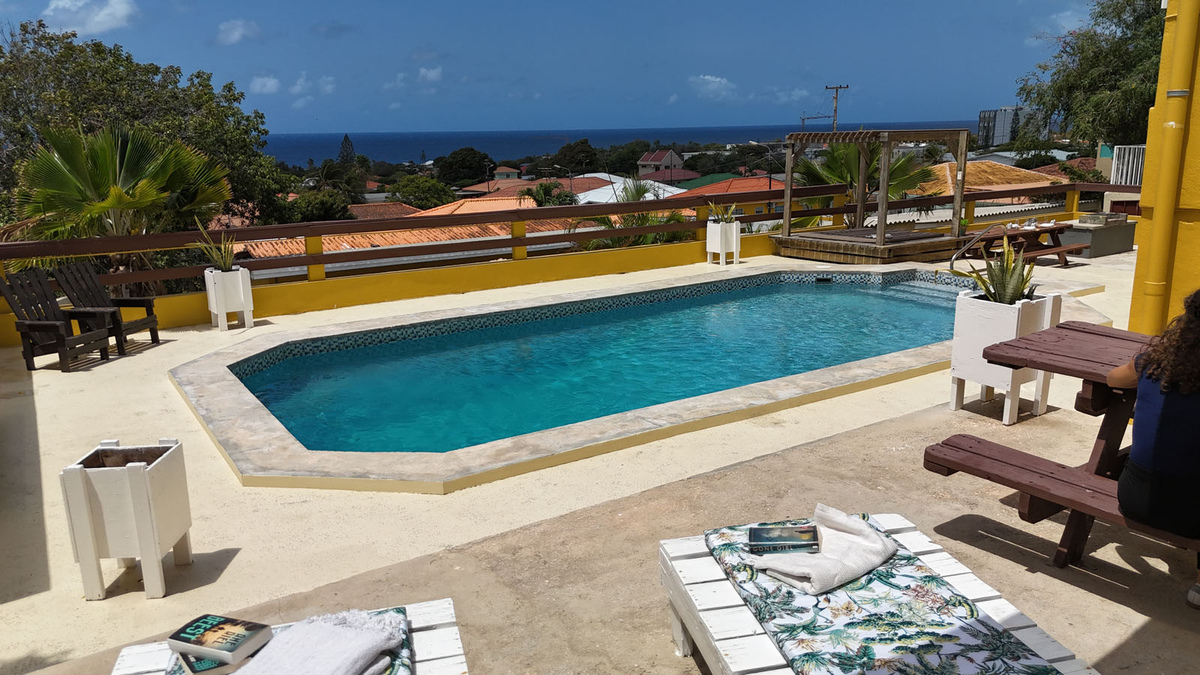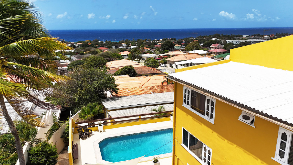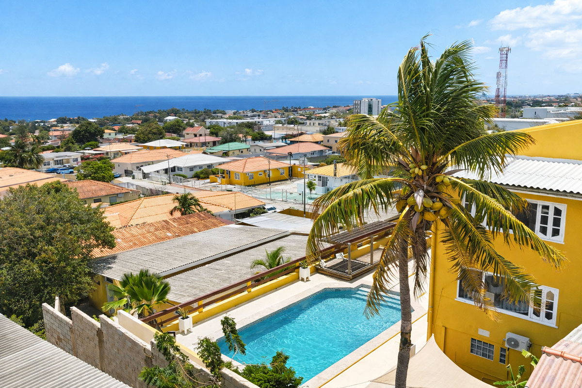 Jongeren- studentenhuis kamer-/studioverhuur Telamonstraat 8. Het enige Curaçaose jongerencomplex met een 180 graden uitzicht op de Caribisch zee vanaf het zwembad, de terrassen of balkons! Bij dit complex heb je als jongwerkende of student alles in handen om je verblijf op Curaçao uniek te maken. Dit is de plek waar je snel je sociale contacten vindt en door de ruime opzet ook makkelijk terug kan trekken wanneer je behoefte hebt aan privacy. Geniet met elkaar en het eiland aan de Telamonstraat 8 studentenhuis. We beschikken bij dit complex over diverse soorten kamers en studio's!