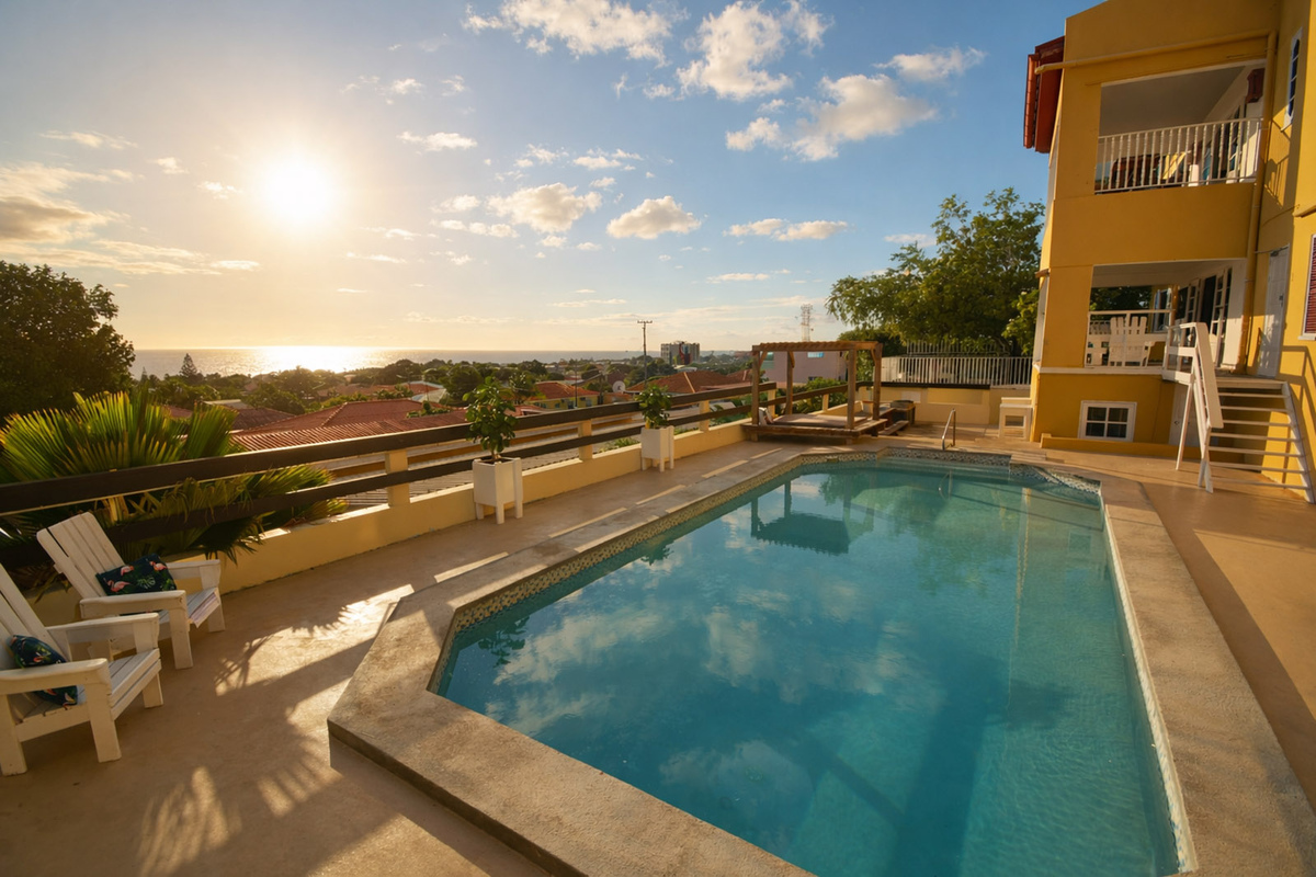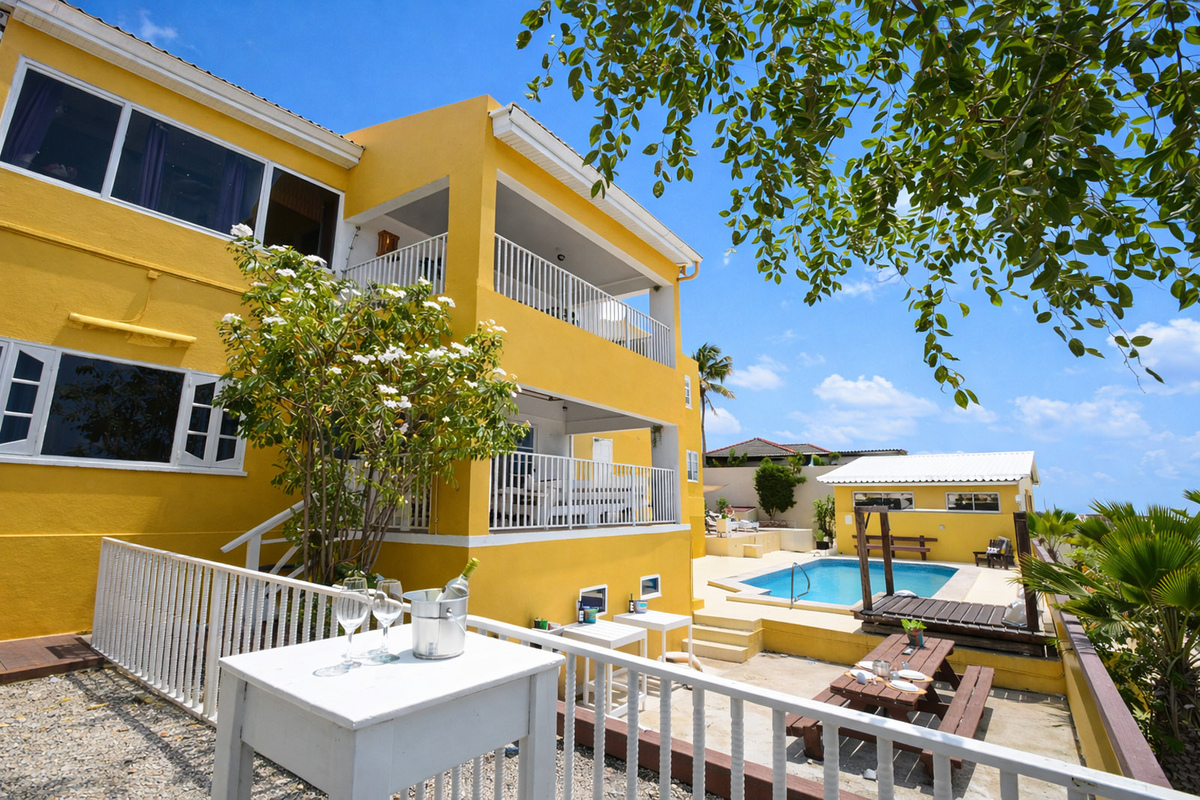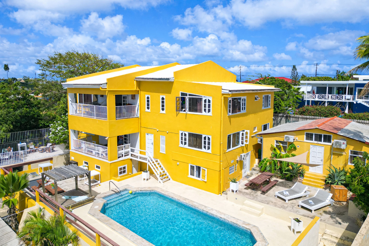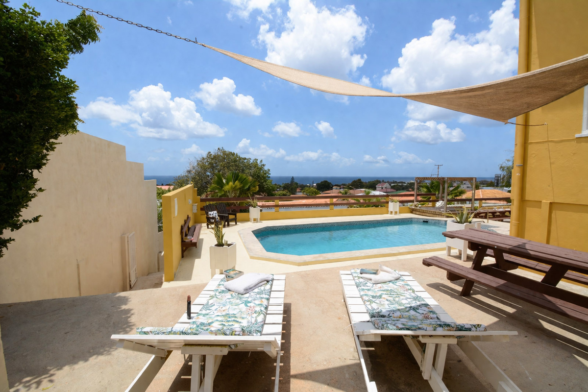 Jongeren- studentenhuis kamer-/studioverhuur Telamonstraat 8. Het enige Curaçaose jongerencomplex met een 180 graden uitzicht op de Caribisch zee vanaf het zwembad, de terrassen of balkons! Bij dit complex heb je als jongwerkende of student alles in handen om je verblijf op Curaçao uniek te maken. Dit is de plek waar je snel je sociale contacten vindt en door de ruime opzet ook makkelijk terug kan trekken wanneer je behoefte hebt aan privacy. Geniet met elkaar en het eiland aan de Telamonstraat 8 studentenhuis. We beschikken bij dit complex over diverse soorten kamers en studio's!